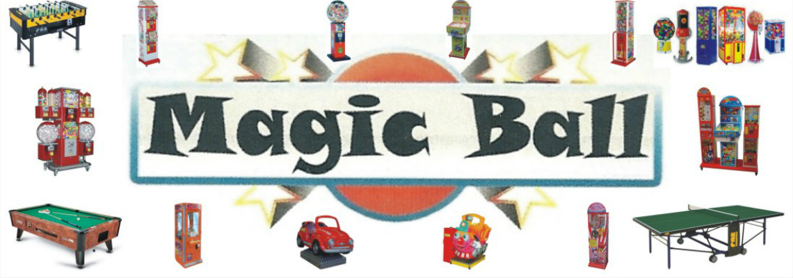 Magic Ball dispone e noleggia (comodato d'uso gratuito) una vastissima gamma di prodotti che spaziano dai distributori meccanici ai Kiddie Rides, dalle gru ai ping pong, dai biliardi carambola ai biliardini (calcio balilla).